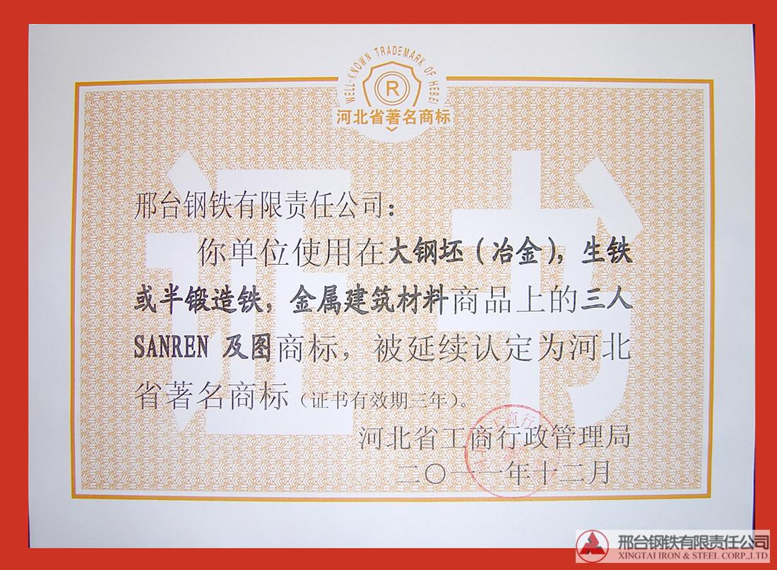 “三人”注冊商標(biāo)被延續(xù)認定為河北省著名商標(biāo)