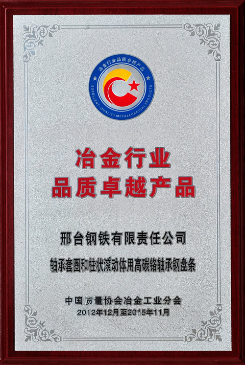 邢鋼軸承鋼盤條榮獲“冶金行業(yè)品質(zhì)卓越產(chǎn)品”榮譽稱號