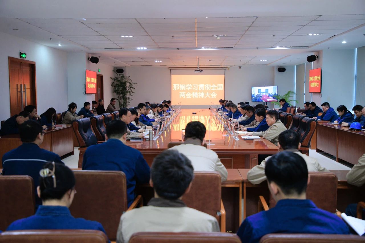 3月18日,邢臺鋼鐵有限責任公司組織召開專題學習會,專題傳達全國兩會精神。公司高管、中層管理人員和副主任師以上人員,分別在公司207會議室和威縣項目地參加會議。
