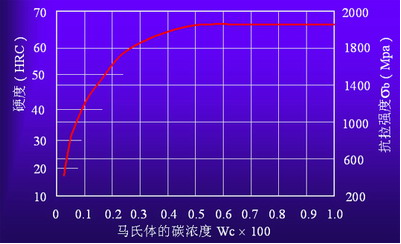 馬氏體性能:馬氏體的強度和硬度主要取決于馬氏體的含碳量。隨著馬氏體含碳量的提高,其強度與硬度也隨之提高。低碳馬氏體具有良好的強度及一定的韌性;高碳馬氏體硬度高、脆性大。
