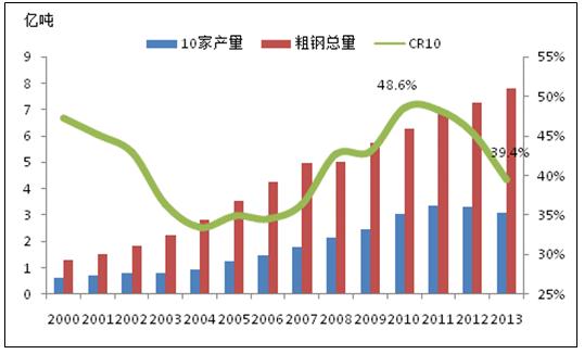 產(chǎn)業(yè)集中度過低,首先會加劇企業(yè)間的無序競爭,減弱了企業(yè)在價格上的談判能力,導(dǎo)致盈利能力減弱;其次,會拉低中國鋼材的整體品質(zhì)和檔次,一旦產(chǎn)業(yè)集中度提高了,企業(yè)會有更多的精力和資金來升級加工裝備,研究出品質(zhì)更好的鋼材,提高中國在國際貿(mào)易中的競爭力;第三,生產(chǎn)的過度分散會造成資源的極大浪費(fèi),帶來更多的環(huán)境污染,進(jìn)一步降低中國的產(chǎn)能利用能力。所以為了鋼鐵行業(yè)的健康發(fā)展,我們必須要進(jìn)行產(chǎn)業(yè)結(jié)構(gòu)的整合,鋼鐵企業(yè)重組勢在必行。