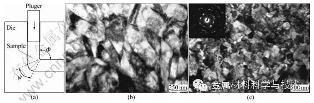 在金屬的成形過程中將超大塑性應(yīng)變應(yīng)用于一定體積的金屬中以獲得超細(xì)晶材料的過程,其本質(zhì)是細(xì)晶強(qiáng)化。通過大的塑性變形使材料的位錯(cuò)密度增加,形成位錯(cuò)壁,將位錯(cuò)壁轉(zhuǎn)化為大角度晶界,從而獲得超細(xì)晶組織以及控制形成不同的織構(gòu)。該技術(shù)已經(jīng)在制備各種超細(xì)晶材料領(lǐng)域獲得了廣泛的應(yīng)用。