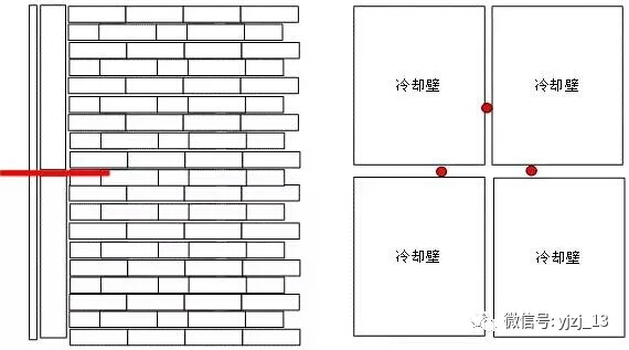 由于砌筑或生產(chǎn)過程中的熱膨脹現(xiàn)象,會在爐皮與冷卻壁間以及冷卻壁與爐缸炭磚之間產(chǎn)生氣塞,尤其在冷卻壁與炭磚之間的氣塞,會嚴(yán)重降低冷卻效率,致使炭磚熱面外擴(kuò),熔蝕加快。換角度說:只有消除氣塞,冷卻系統(tǒng)才會發(fā)生作用,將熱量傳遞出來,利于爐缸內(nèi)形成渣鐵保護(hù)層,促進(jìn)爐缸的安全長壽。