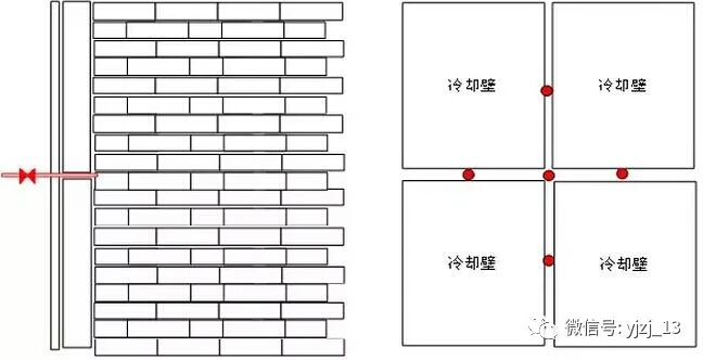 (3)對鐵口下方熱流強(qiáng)度較高的冷卻壁預(yù)留高壓工業(yè)水支管(1.6MPa)。