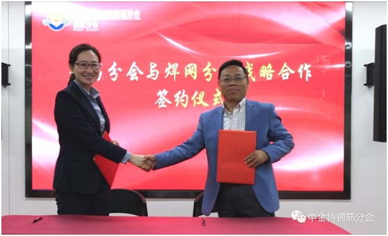 會(huì)議最后,為了加強(qiáng)鋼筋加工與焊網(wǎng)協(xié)會(huì)的深入交流,共同推進(jìn)行業(yè)發(fā)展,鋼筋分會(huì)與焊網(wǎng)分會(huì)在論壇上舉行了戰(zhàn)略合作簽約儀式。