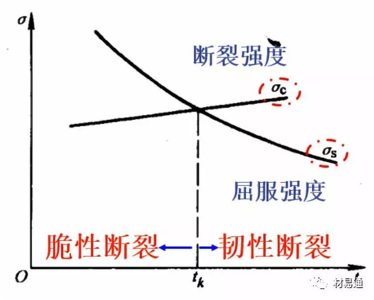低溫脆性是材料屈服強度隨著溫度的降低急劇增加的結(jié)果;見右圖,屈服點隨著溫度的下降而升高,但材料的斷裂強度隨著溫度的變化很??;兩線交點對應(yīng)的溫度就是tk。