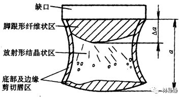 裂紋快速擴(kuò)展形成結(jié)晶區(qū),到了壓縮區(qū)后,應(yīng)力狀態(tài)發(fā)生變化,裂紋擴(kuò)展速度再次減小,形成纖維區(qū)。