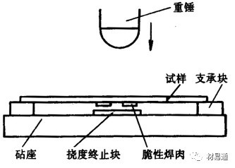 試樣冷卻到一定溫度后放在砧座上,使有焊肉的軋制面向下處于受拉側(cè),然后落下重錘進(jìn)行打擊。隨著試樣溫度的下降,其力學(xué)行為發(fā)生如下變化: