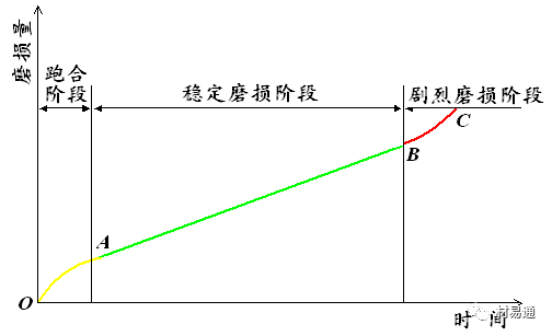 劇烈磨損階段:隨磨損的增長,磨耗增加,表面間隙增大,表面質(zhì)量惡化,機件快速失效。