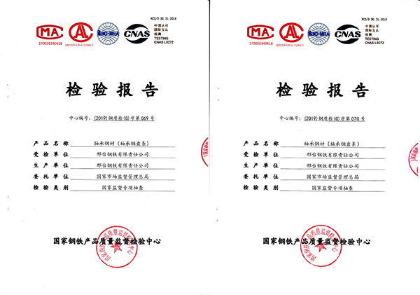 邢鋼高碳鉻軸承鋼國家級監(jiān)督抽查全部合格 達到高級優(yōu)質(zhì)鋼級別水平