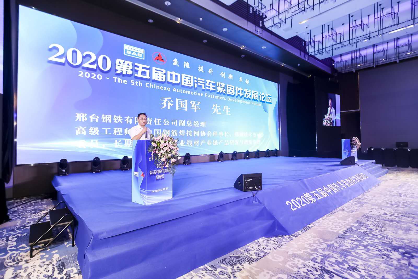 2020年9月8日,由中國汽車工程學(xué)會(huì)、中國汽車工程學(xué)會(huì)汽車防腐蝕老化分會(huì)主辦的2020第五屆中國汽車緊固件發(fā)展論壇在嘉興召開。汽車主機(jī)廠、零部件整機(jī)廠、緊固件企業(yè)、檢測機(jī)構(gòu)、科研院所、大專院校等180多家緊固件相關(guān)單位的科研人員、技術(shù)人員及管理人員400多人出席大會(huì)。本次大會(huì)由邢臺(tái)鋼鐵有限責(zé)任公司承辦,公司副總經(jīng)理喬國軍、總經(jīng)理助理兼銷售公司總經(jīng)理劉振民等參加了大會(huì)。