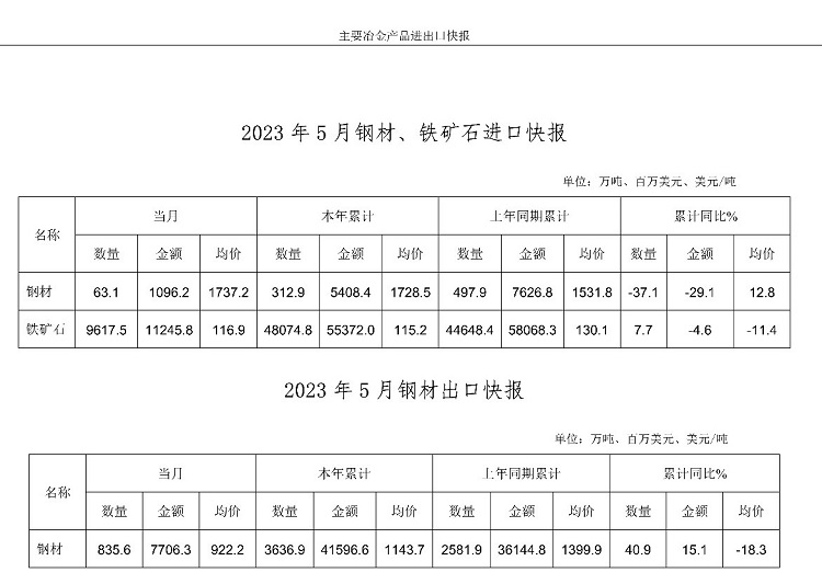 中鋼協:5月主要冶金產品進出口快報