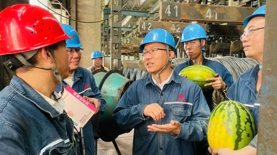 7月8日上午,為落實(shí)公司黨委書記、董事長張育明關(guān)于“把防暑降溫、關(guān)愛員工、安全生產(chǎn)等抓細(xì)抓實(shí)”的工作要求,夏日送清涼活動(dòng)有序開展,公司向煉鋼、線材、煉鐵、燒結(jié)、動(dòng)力、儲運(yùn)高溫下堅(jiān)守崗位的職工送去西瓜、飲料慰問品及防暑降溫必備物資用品,把企業(yè)的關(guān)懷送到職工心坎里,對大家一直以來為邢鋼辛勤付出表達(dá)謝意,并囑咐在崗員工在堅(jiān)守崗位的同時(shí)注意勞逸結(jié)合,謹(jǐn)防高溫中暑,確保身體健康、安全生產(chǎn)。
