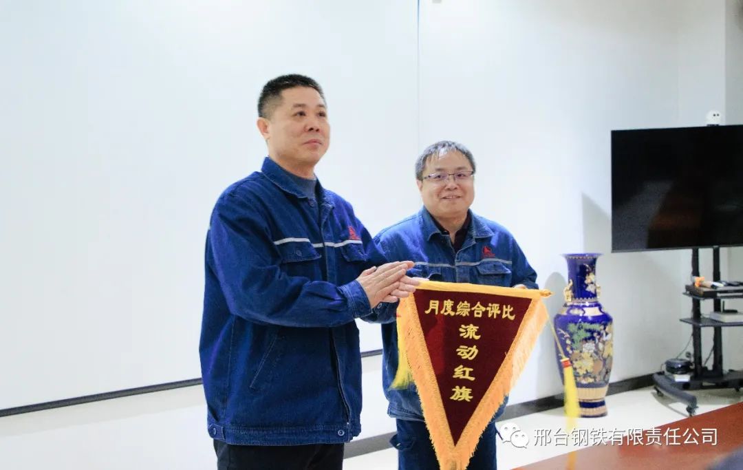 12月10日,在邢鋼207會議室,公司董事長張育明將11月份月度綜合評比“流動紅旗”再次頒發(fā)到煉鋼廠廠長和紅杰手中。