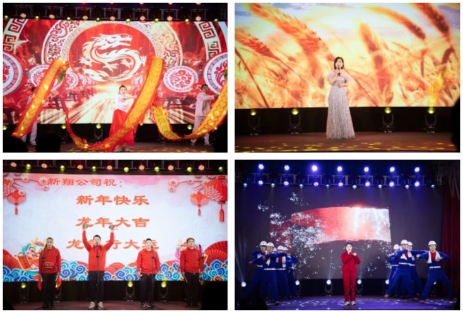 演出開始前,由各二級(jí)單位錄制的《鋼鐵工人大拜年》視頻為聯(lián)歡會(huì)開幕烘托出濃厚的節(jié)日喜慶氣氛。煉鐵廠王艷等的開場(chǎng)舞《中國龍,舞起來》歡樂、動(dòng)感;儲(chǔ)運(yùn)中心侯伊坤的獨(dú)唱《風(fēng)吹麥浪》唯美、清新;新翔公司楊立興等的三句半表演《賀龍年》則輕松、詼諧;煉鐵廠劉士沛與新入職年輕人“以老帶新”的歌伴舞《時(shí)代號(hào)子——致敬邢鋼人》點(diǎn)燃起晚會(huì)現(xiàn)場(chǎng)觀眾的火熱激情。質(zhì)量控制部孫濤的薩克斯獨(dú)奏《she》、焦化廠申學(xué)軍的《戲曲串燒》、線材廠魏東的獨(dú)唱《兄弟干杯》、財(cái)務(wù)部楊佳薏的獨(dú)舞《星河嘆》、銷售公司田芳等的小合唱《不放棄》、煉鋼廠甄建軍、張康健的二重唱《可能》、動(dòng)力廠董巖、陳險(xiǎn)峰等的歌舞《最親的人》等節(jié)目繽紛呈現(xiàn),展示了邢鋼人多才多藝的別樣風(fēng)貌;煉鐵廠楊曉霞等的情景劇《歲月》以兩代人的視角,抒發(fā)了企業(yè)歷史變遷中不變的邢鋼人情懷;賈凌雪、陳燕、魏秋紅、李濟(jì)興聯(lián)袂表演的詩朗誦《沉香·甲子邢鋼》,回顧邢鋼65年跋涉歷程,寄語新邢鋼美好未來;公司總經(jīng)理彭世丹等中高層領(lǐng)導(dǎo)的合唱《眾人劃槳開大船》把整場(chǎng)聯(lián)歡會(huì)推向高潮,臺(tái)上歌聲鏗鏘,臺(tái)下掌聲相和,激發(fā)起邢鋼人“眾志成城創(chuàng)大業(yè),凝心聚力贏未來”的壯志豪情。聯(lián)歡會(huì)在《陽光路上》的歌聲中落下帷幕,預(yù)示著新邢鋼的未來發(fā)展一路陽光、前程錦繡!