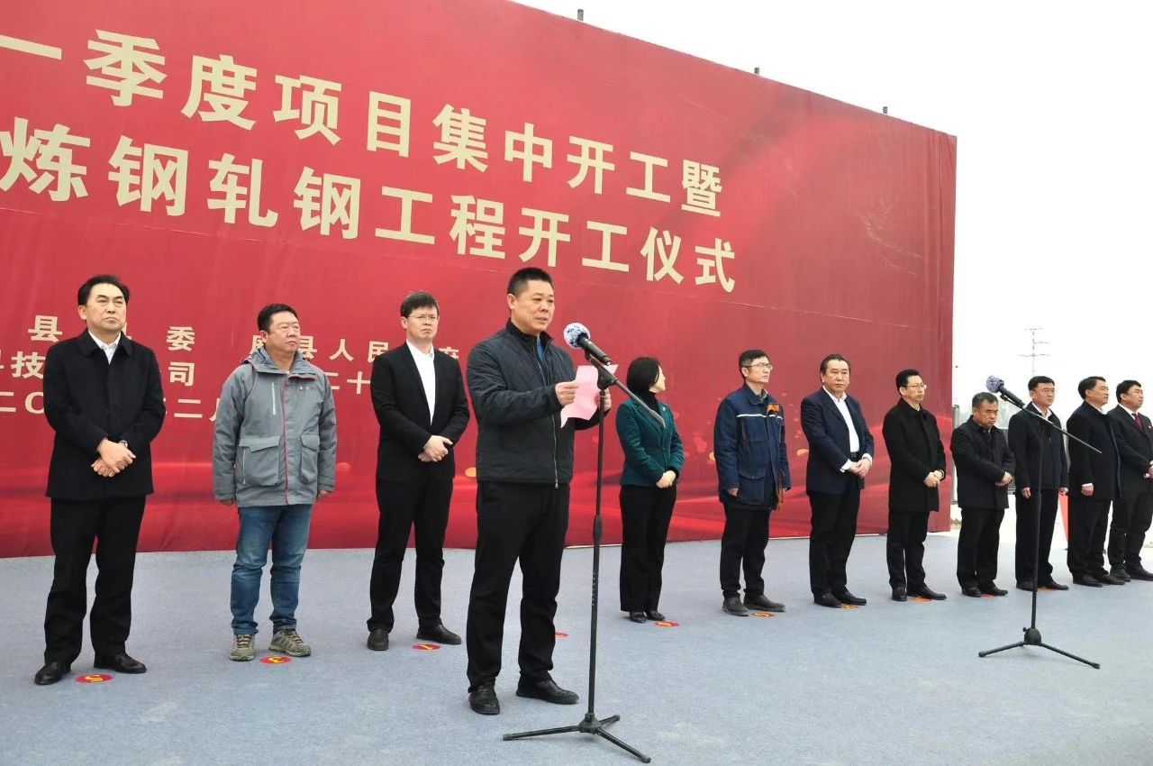 On February 18th, the groundbreaking ceremony for the Steelmaking and Rolling Engineering of Xingtai Steel's transformation, upgrading, and relocation renovation project was held. This event represents another milestone in the main construction project following the commencement of the Plant Front Area Project on January 16th. The Secretary of the Wei County Party Committee, Cui Yaopeng, the Chairman of Xingtai Iron and Steel Co., Ltd., Zhang Yuming, and the Deputy General Manager of China 20th Metallurgical Construction Co., Ltd., Zhang Shiyan, attended the ceremony and delivered speeches respectively. The groundbreaking ceremony was conducted in conjunction with Wei County's first-quarter project kickoff for 2024, which involved a total of 28 projects with a combined investment of 9.72 billion yuan.