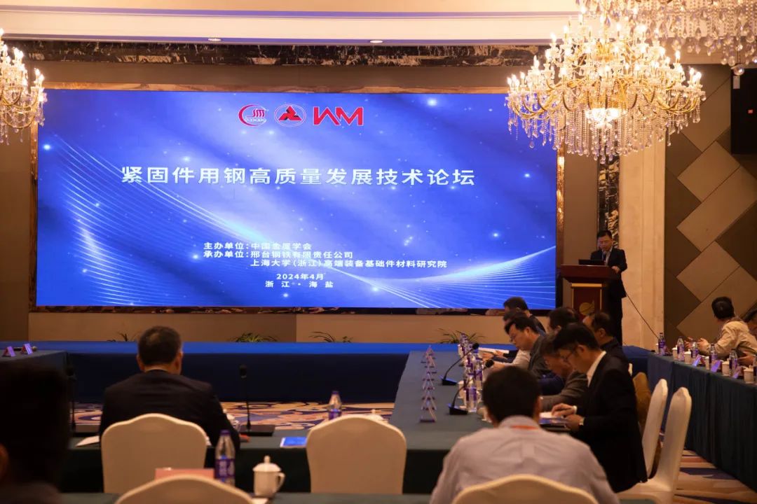 為了促進(jìn)我國緊固件用冷鐓鋼的高質(zhì)量發(fā)展,共創(chuàng)緊固件產(chǎn)業(yè)新質(zhì)生產(chǎn)力。4月19日,中國金屬學(xué)會(huì)、邢臺(tái)鋼鐵有限責(zé)任公司、上海大學(xué)聯(lián)合主辦的緊固件用鋼高質(zhì)量發(fā)展技術(shù)論壇在“緊固件之鄉(xiāng)”浙江嘉興海鹽縣隆重舉行。中國金屬學(xué)會(huì)副理事長兼秘書長王新江、邢鋼黨委書記兼董事長張育明、海鹽縣副縣長章劍鋒、浙江省緊固件行業(yè)協(xié)會(huì)秘書長沈家華、上海大學(xué)(浙江)高端裝備基礎(chǔ)件材料研究院(簡稱:“上善院”)院長董瀚出席論壇并作主旨講話。