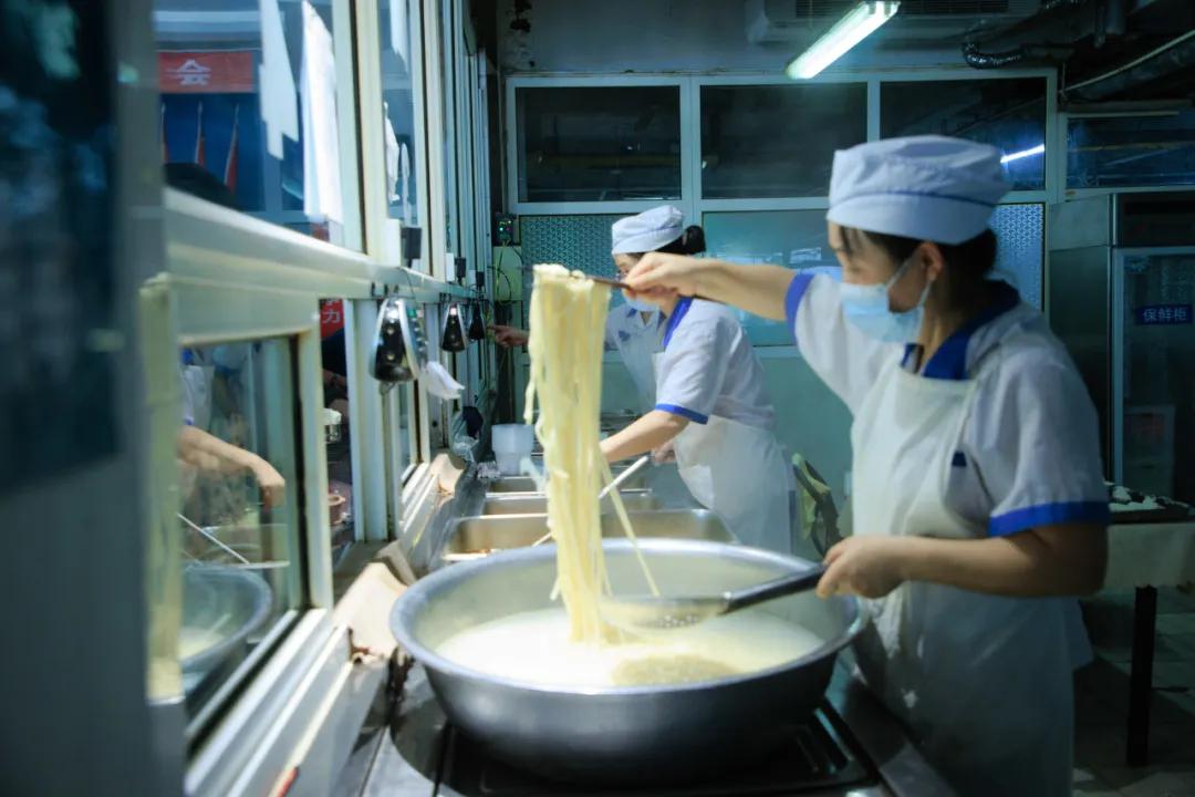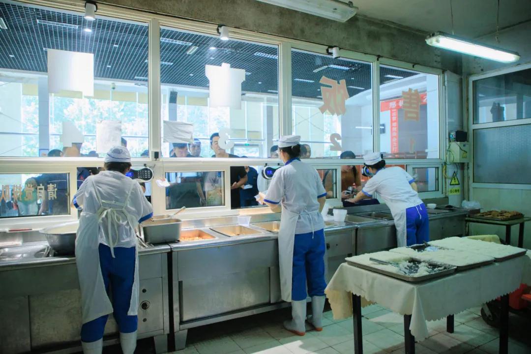 經(jīng)濟(jì)實惠。食堂以低于成本的價格向職工提供三餐,午餐中三肉兩素5元能吃飽吃好,鹵雞腿4元1個,獅子頭2元1個,黃燜雞塊、紅燒帶魚等5元1份,面條/饸饹面2.5元1份;早餐、晚餐2元能吃飽吃好,雞蛋0.5元1個,手抓餅1元1個,雞蛋灌餅含1雞蛋1.5元1個,肉夾饃3元1個。