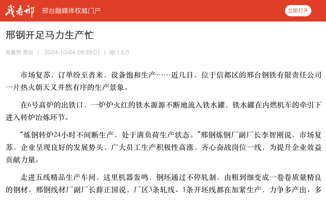 在 6 號高爐的出鐵口,一爐爐火紅的鐵水源源不斷地流入鐵水罐,鐵水罐在內(nèi)燃機(jī)車的牽引下進(jìn)入轉(zhuǎn)爐冶煉環(huán)節(jié)。“煉鋼轉(zhuǎn)爐 24 小時不間斷生產(chǎn), 處于滿負(fù)荷生產(chǎn)狀態(tài)。”邢鋼煉鋼廠副 廠長李智剛說,市場復(fù)蘇,企業(yè)呈現(xiàn)良好的發(fā)展勢頭,廣大員工生產(chǎn)積極性高漲,齊心奮戰(zhàn)崗位一線,為提升企業(yè)效益貢獻(xiàn)力量。走進(jìn)五線精品生產(chǎn)車間,這里機(jī)器轟鳴,鋼坯通過不停軋制,由粗到細(xì)變成一卷卷質(zhì)量精良的鋼材。邢鋼線材廠副廠長薛正國說,廠區(qū) 3 條軋線、 1 條開坯線都在加緊生產(chǎn),力爭多產(chǎn) 出、多收益。近年來,邢鋼致力于轉(zhuǎn)型升級促進(jìn)高質(zhì)量發(fā)展,專注于工業(yè)新材料的研發(fā)制造,公司優(yōu)特鋼比例達(dá) 100%,高新產(chǎn)品達(dá) 70%以上,擁有冷鐓鋼、純鐵、彈簧鋼等 18 大類 600 多個鋼種 3500 多種產(chǎn)品,廣泛應(yīng)用于汽車、大跨 度橋梁、鐵路等國家優(yōu)先發(fā)展的領(lǐng)域。高品質(zhì)特鋼產(chǎn)品讓邢鋼不斷贏得市場認(rèn)可。前不久,在上海國際緊固件 工業(yè)博覽會和 2024 印尼雅加達(dá)東南亞緊固件專業(yè)展上,邢鋼與巴西、越南等多個國家的企業(yè)達(dá)成合作意向;邢鋼的“新能源汽車用高強(qiáng)度超高潔凈度冷鐓鋼技術(shù)創(chuàng)新及應(yīng)用”項目經(jīng)河北省質(zhì)量 文化協(xié)會選拔、中國質(zhì)量協(xié)會推薦,成功入圍 2024 年度國際質(zhì)量創(chuàng)新大賽。“邢鋼專注高端鋼材生產(chǎn),市場競爭力強(qiáng),訂單充足,未來一個月的訂單已經(jīng)基本排滿,多種規(guī)格產(chǎn)品訂單量增長。”在五線中控室,薛正國在電腦上翻看排單表,信心十足地說“,在市場大環(huán)境穩(wěn)定的情況下,訂單量有保證。”在采訪中,五線精品生產(chǎn)車間主任張志斌說,火力全開的生產(chǎn)景象令人振奮,他將把自己 20 年的工作經(jīng)驗運(yùn)用到生產(chǎn)中去,推動鋼材標(biāo)準(zhǔn)化生 產(chǎn),滿足客戶的需求,不斷提升產(chǎn)品質(zhì)量和邢鋼品牌滿意度。