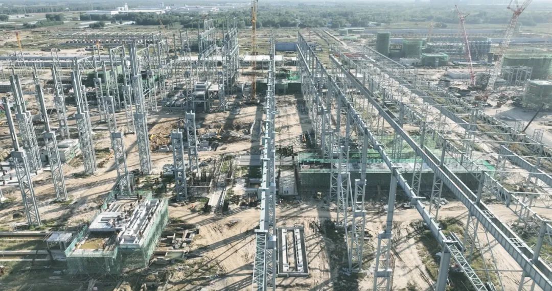 據(jù)了解,項目的鐵、鋼、軋主工序及公輔、廠前區(qū)施工都已全面鋪開。截至目前,一期主線工程已全面進入地面土建及鋼結構施工階段;軋鋼大盤卷、煉鐵熔融還原爐、制氧等區(qū)域已經(jīng)全面進入設備安裝階段。