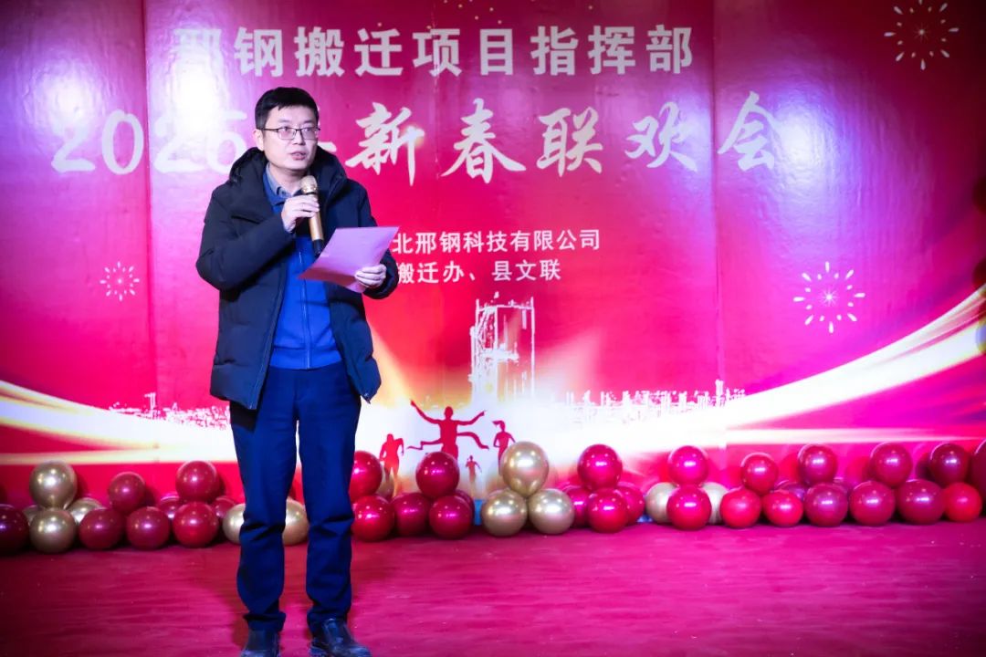 在熱烈、融洽的氣氛中,聯(lián)歡會拉開帷幕。威縣縣委常委、宣傳部長、搬遷專班班長白鋒發(fā)表致辭。他代表威縣縣委、縣政府,向所有關(guān)心支持邢鋼搬遷改造項目的各級領(lǐng)導(dǎo)和參與建設(shè)的同志們表達了崇高的敬意和衷心的感謝。并高度評價了邢鋼人在過去一年中展現(xiàn)出的團結(jié)協(xié)作、頑強拼搏的精神,表示威縣政府將繼續(xù)全力支持邢鋼搬遷項目,推動項目早日建成投產(chǎn),為威縣經(jīng)濟發(fā)展做出更大貢獻。