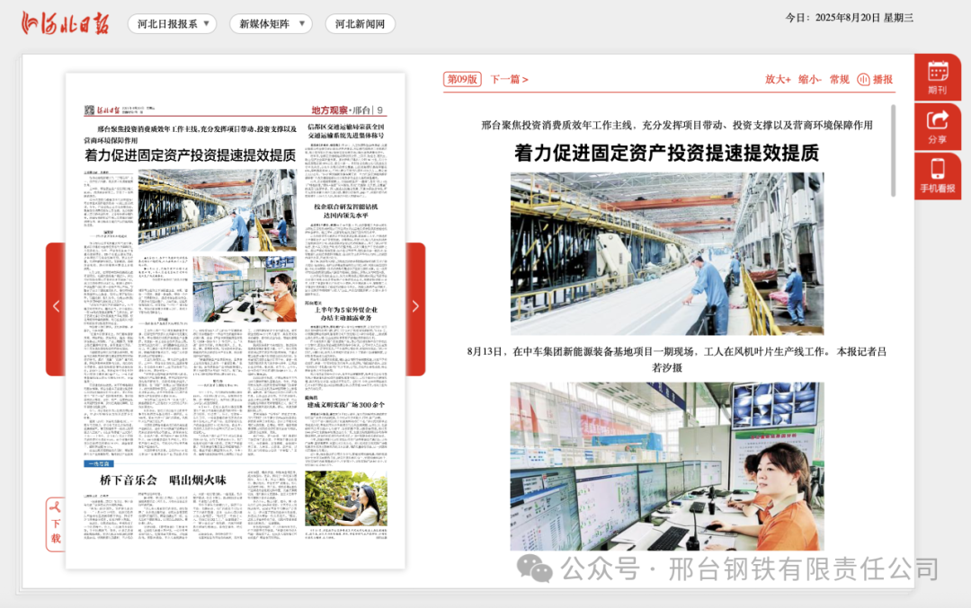上半年,邢臺固定資產(chǎn)投資同比增長16.6%,增速居全省第二,交出了一張亮眼成績單。這份成績背后藏著怎樣的發(fā)展密碼?邢臺市重點(diǎn)項(xiàng)目建設(shè)促進(jìn)中心副主任王斌說,今年,邢臺堅(jiān)持工業(yè)立市發(fā)展戰(zhàn)略,聚焦投資消費(fèi)質(zhì)效年工作主線,充分發(fā)揮重大項(xiàng)目的帶動(dòng)作用、工業(yè)投資的支撐作用、民間投資的拉動(dòng)作用以及營商環(huán)境的保障作用,著力促進(jìn)固定資產(chǎn)投資提速提效提質(zhì)。