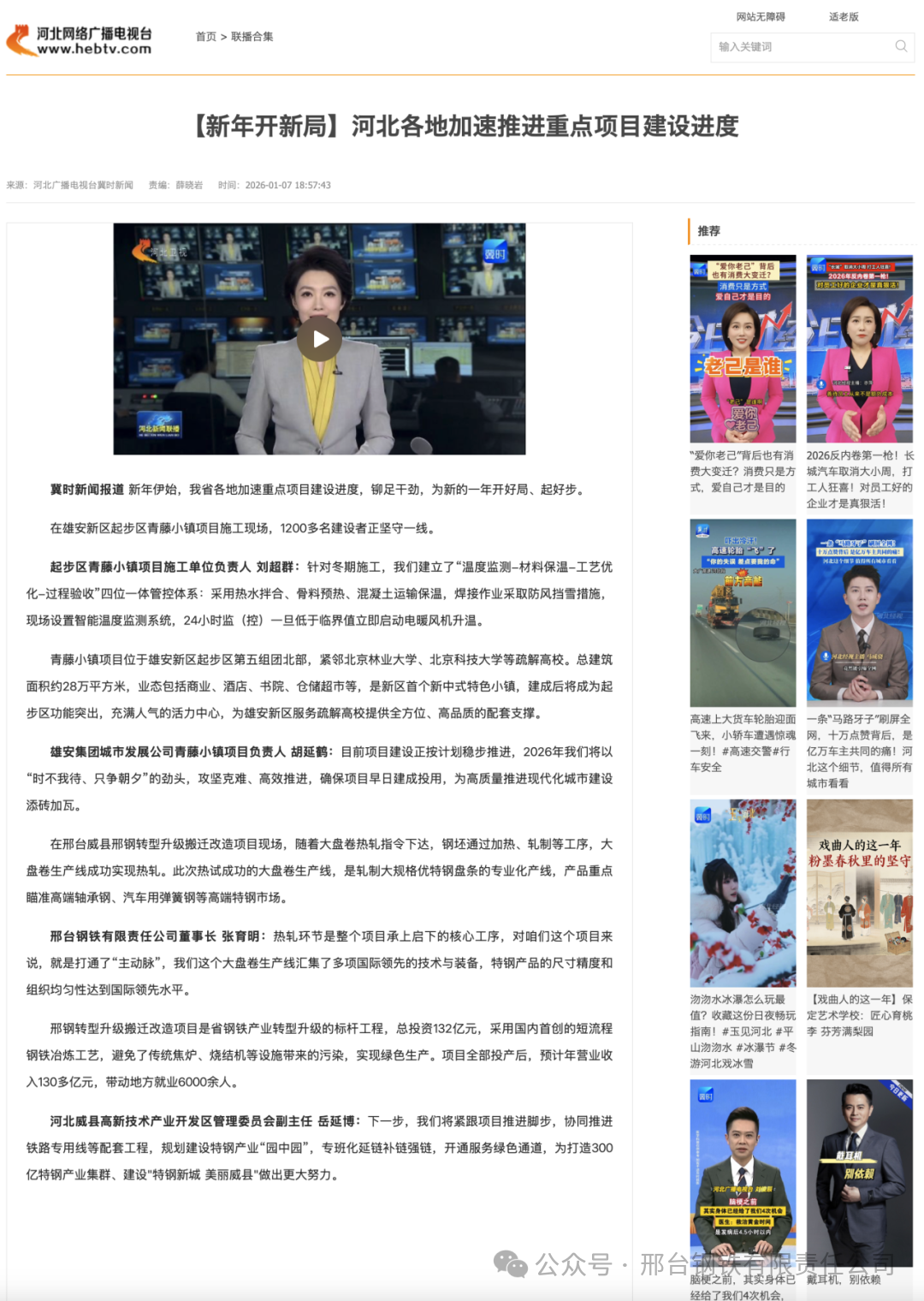 邢臺(tái)鋼鐵有限責(zé)任公司董事長(zhǎng) 張育明:熱軋環(huán)節(jié)是整個(gè)項(xiàng)目承上啟下的核心工序,對(duì)咱們這個(gè)項(xiàng)目來(lái)說(shuō),就是打通了“主動(dòng)脈”,我們這個(gè)大盤(pán)卷生產(chǎn)線匯集了多項(xiàng)國(guó)際領(lǐng)先的技術(shù)與裝備,特鋼產(chǎn)品的尺寸精度和組織均勻性達(dá)到國(guó)際領(lǐng)先水平。